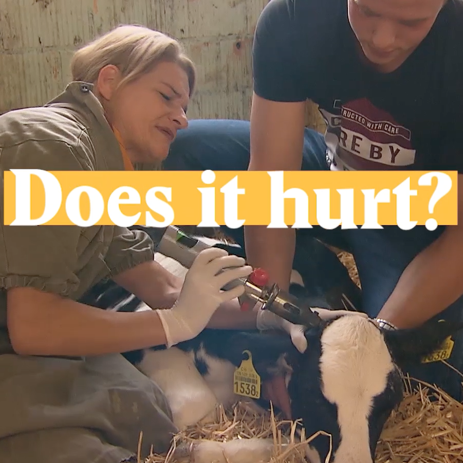 Calves and goats are disbudded before the age of three weeks, with the horn bud being burned with a hot iron. Over 20% of calves continue to suffer pain in the long term, according to the initiative committee.