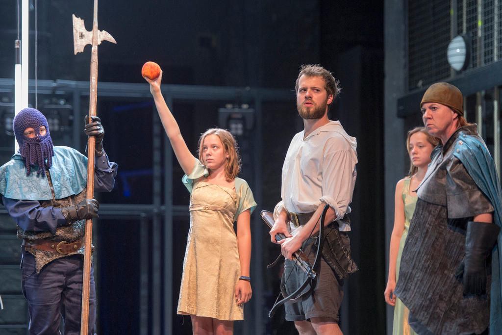 The wicked bailiff has an apple placed on the head of Tell’s son, Walter, and orders the archer to shoot it off.