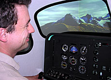 The simulators are particularly effective for training because an instructor can “fly” with the student, using a networked computer to add elements such as low-visibility, crosswinds and even trigger emergencies.
