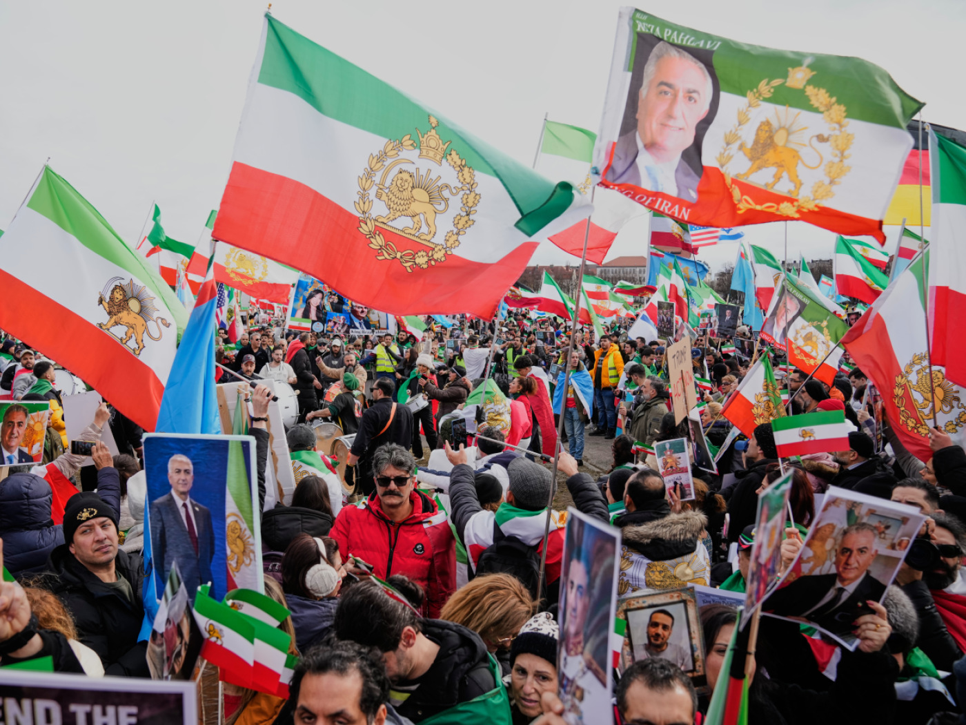 Certains brandissaient des drapeaux à bandes horizontales verte, blanche et rouge avec un lion et un soleil, étendard de la monarchie renversée en 1979. «La culture prévaut toujours sur la force et la répression», pouvait-on lire sur une pancarte.