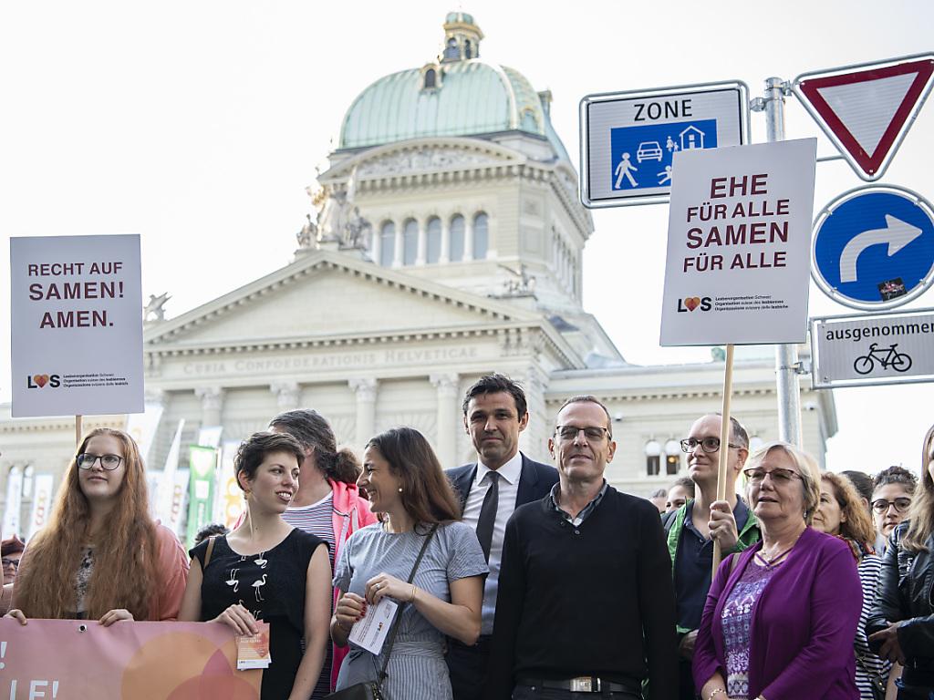 Le projet de loi «Mariage civil pour toutes et tous» doit être examiné par la Commission des affaires juridiques du Parlement (CAJ) vendredi. La procédure de consultation a montré qu’il était largement accepté. Les couples de même sexe doivent bénéficier des mêmes droits que les couples hétérosexuels.