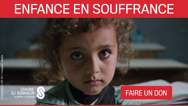 La Chaîne n’intervient pas directement, mais mène régulièrement depuis la Suisse des collectes de dons sur différents thèmes. Sa toute première collecte concernait l’aide à l’enfance, qui est toujours aujourd’hui l’un des trois grands piliers de sa mission – parallèlement à l’aide sociale et au soutien humanitaire après les catastrophes. Les fonds récoltés sont distribués à des ONG sélectionnées sur appels à projets. Actuellement 24, organisationsLien externe opèrent sur le terrain en partenariat avec la Chaîne du Bonheur, parmi lesquelles les branches suisses de Terre des Hommes, Save the Children et IAMANEH.