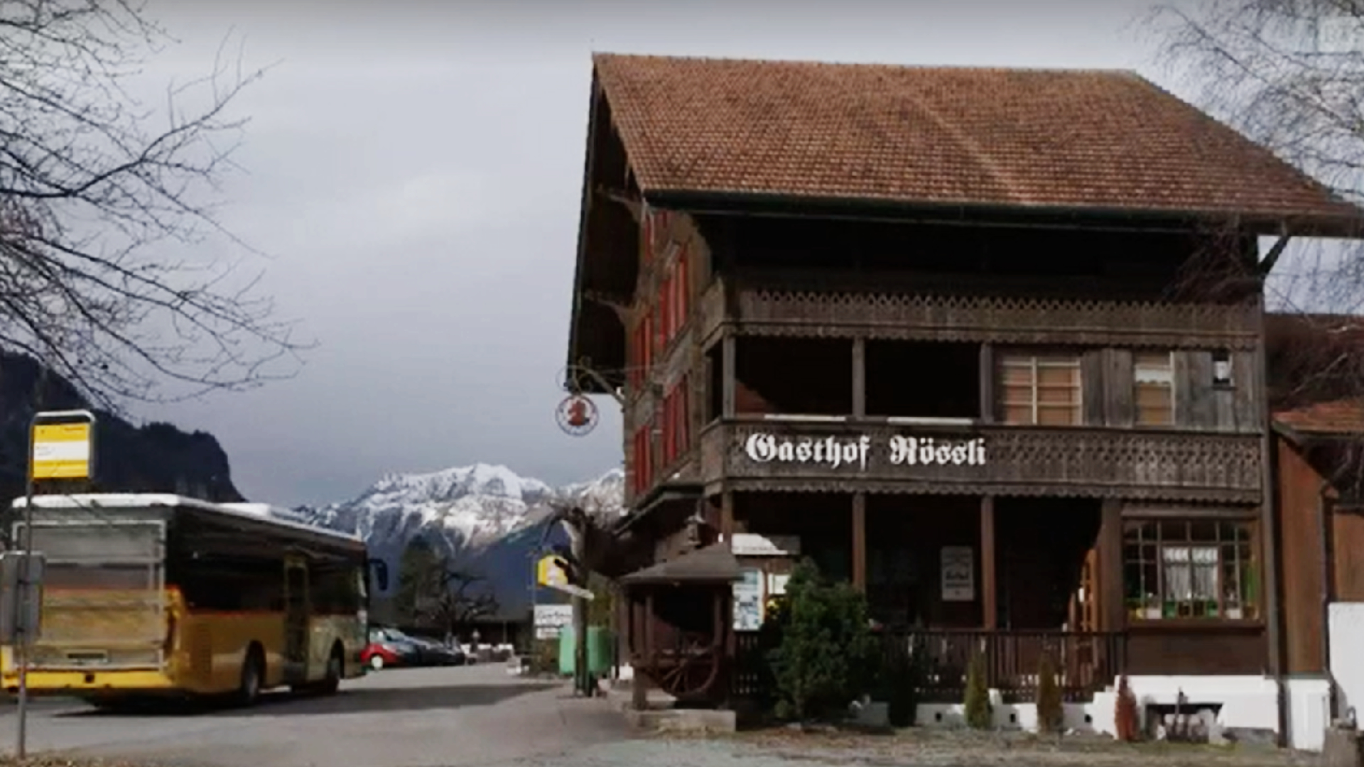 L’hôtel Rössli, acheté par David en 2018, est sans charme, vieillissant et hors des circuits touristiques. Cet hôtel se trouve juste en bordure de l’aéroport militaire de Meiringen. Un lieu idéal pour une opération d’espionnage car les chambres ont une vue directe sur la piste de décollage. Les avions militaires passent en effet à moins de 50 mètres de l’établissement.