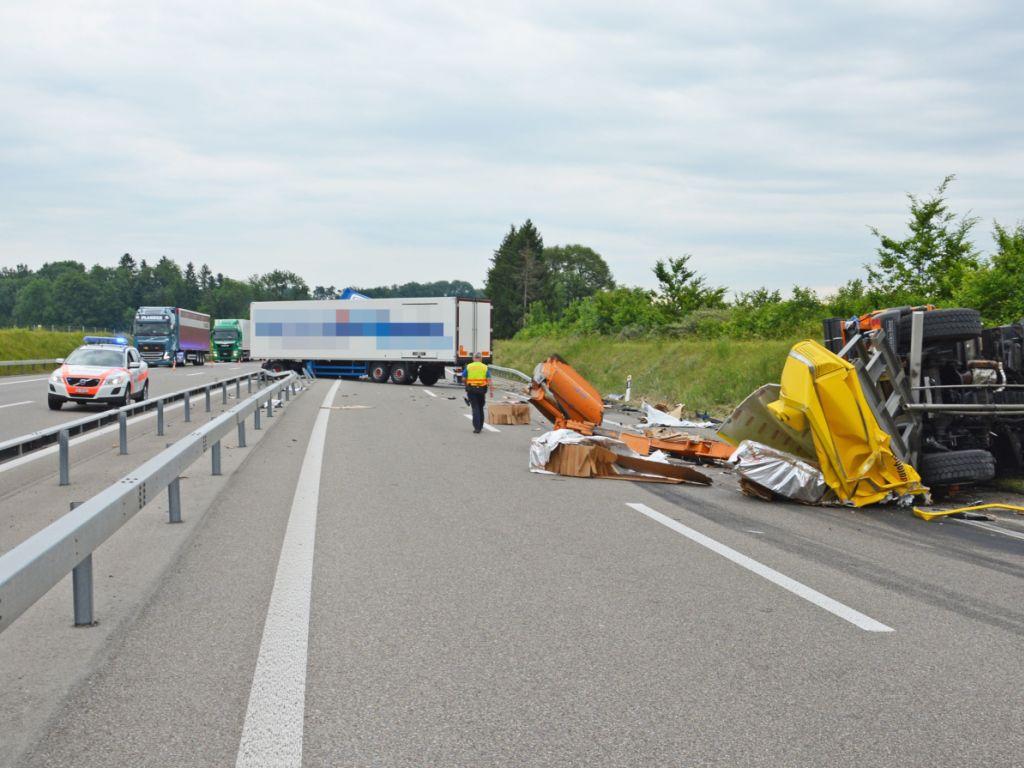 L’accident s’est produit vers 8h00. Le semi-remorque a heurté un véhicule d’entretien qui tondait un talus au bord de l’autoroute, a indiqué la police cantonale thurgovienne. Le véhicule d’entretien s’est renversé sur le côté, le conducteur âgé de 42 ans a été légèrement blessé.