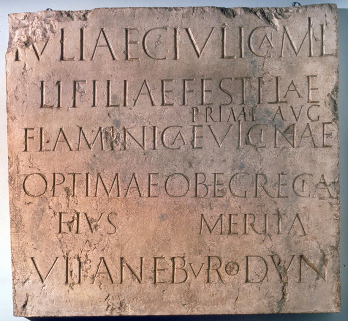Iulia Festilla, la fille de Iulius Camillus, fut également une personnalité influente. Conformément à la tradition romaine, Iulia avait hérité du nom de son père. Grâce à une inscription qui nous est parvenue, nous savons qu’elle occupait la fonction de prêtresse et qu’elle vécut sans doute dans les environs d’Yverdon.