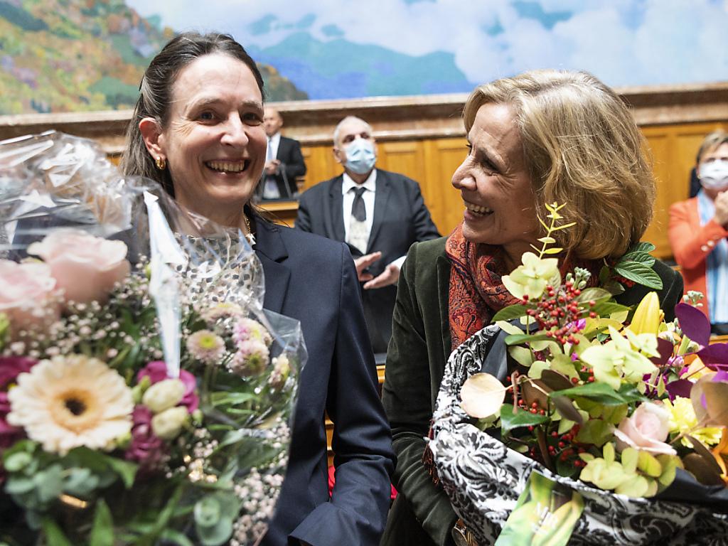 La Vaudoise Céline Weber Koppenburg (à gauche) et la Bâloise Patricia von Falkenstein (à droite) ont prêté serment lundi au Conseil national. KEYSTONE/ALESSANDRO DELLA VALLE sda-ats