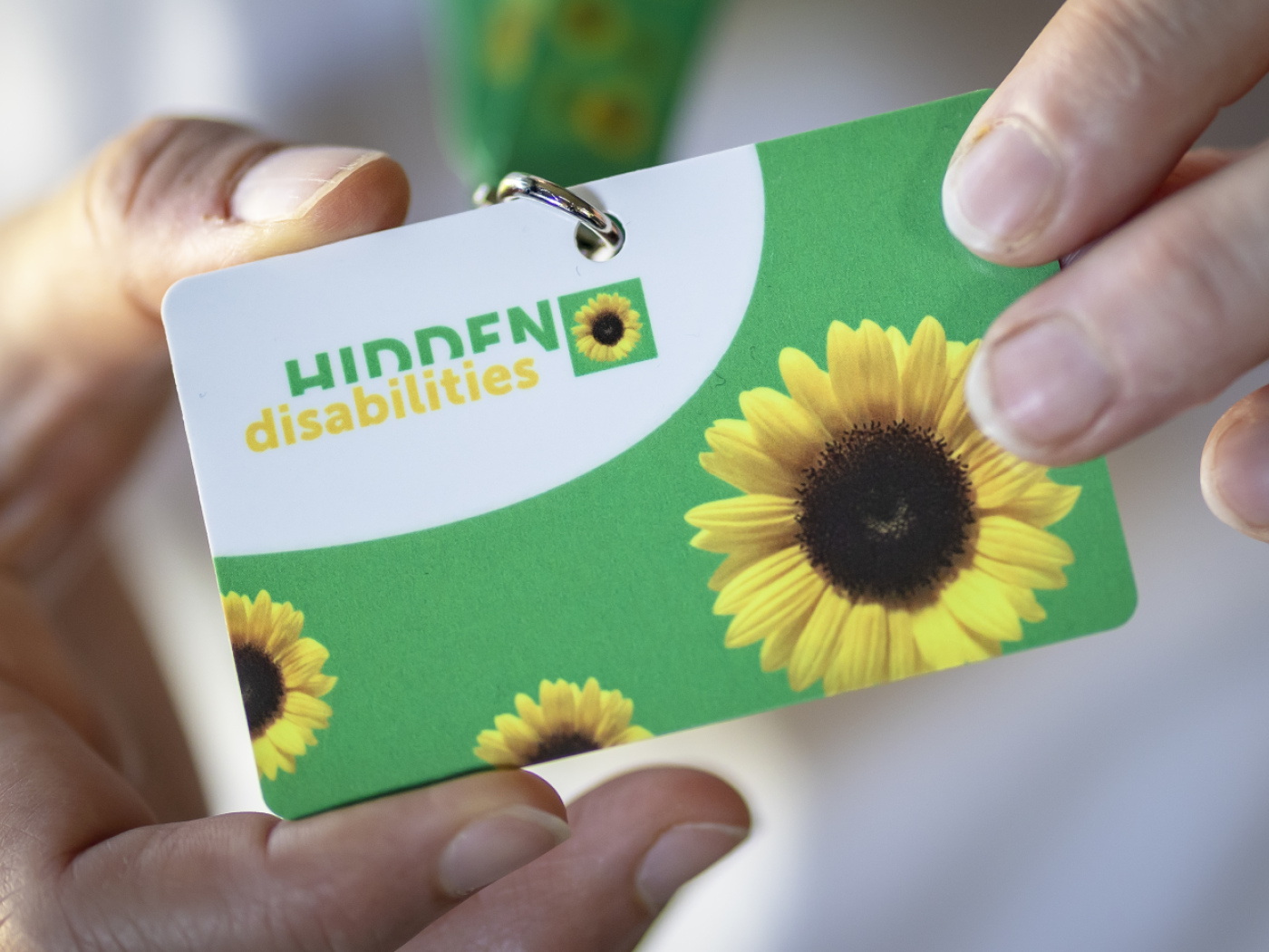 Le cordon vert orné de tournesols jaunes est destiné aux personnes souffrant de troubles non visibles, tels que l’autisme, le TDAH ou la maladie de Parkinson. Il vise à indiquer que la personne qui le porte pourrait avoir besoin de plus de patience, de considération ou d’aide, par exemple lors du contrôle des billets.