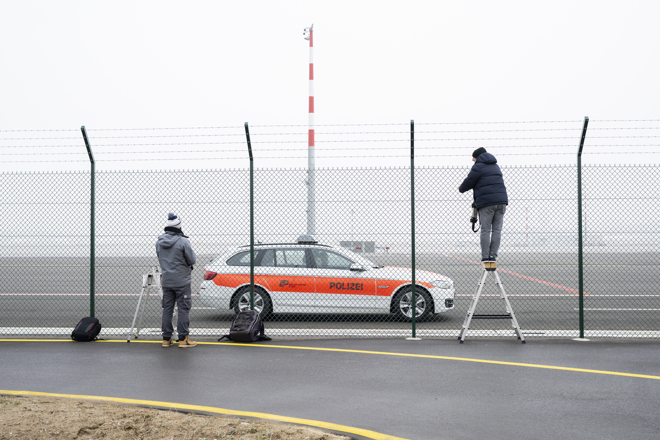 Les allées et venues des avions à l’aéroport de Zurich deviennent particulièrement intéressantes en ces jours de WEF. Sur la photo, des personnes tentent de repérer les avions transportant les personnalités les plus en vue se rendant à l’événement.