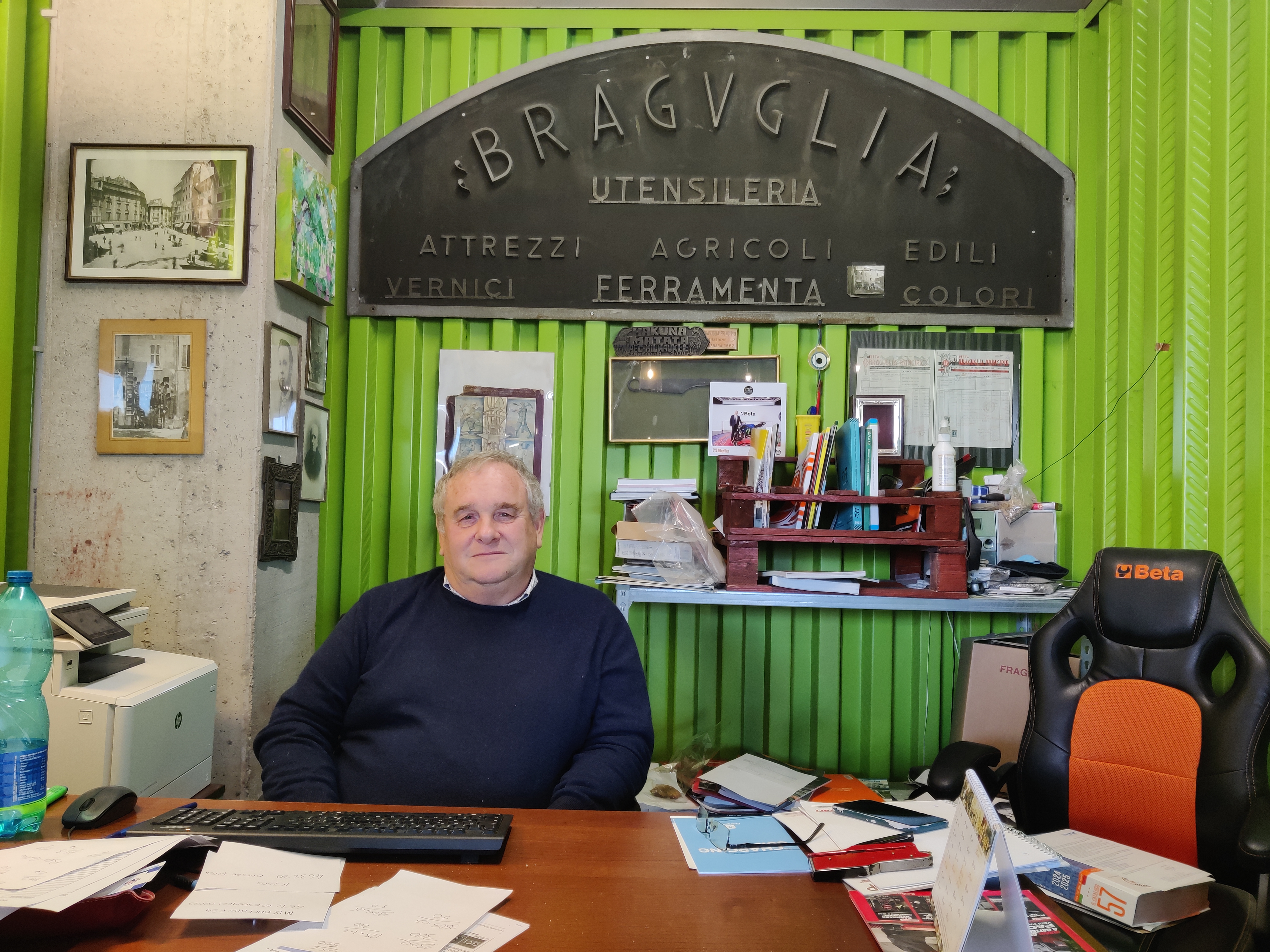 «À l’époque, poursuit Leonardo, mon grand-père et son frère ont commencé à y travailler, suivis de mon père et mon oncle. L’entreprise a toujours été familiale. Nous sommes restés à cet endroit pendant plus de septante ans, jusqu’à ce que le ZTL (Zona a traffico limitato) réduise l’accès au centre-ville à partir des années quatre-vingt.» Longtemps, la famille Braguglia s’est concentrée sur l’activité de rémouleur et de coutelier. Avec la mutation de Rome en ville touristique, l’entreprise s’est adaptée pour se présenter aujourd’hui comme un spécialiste de la revente d’équipement de construction. Ce qui n’a pas changé, c’est le lien avec la mère patrie.
