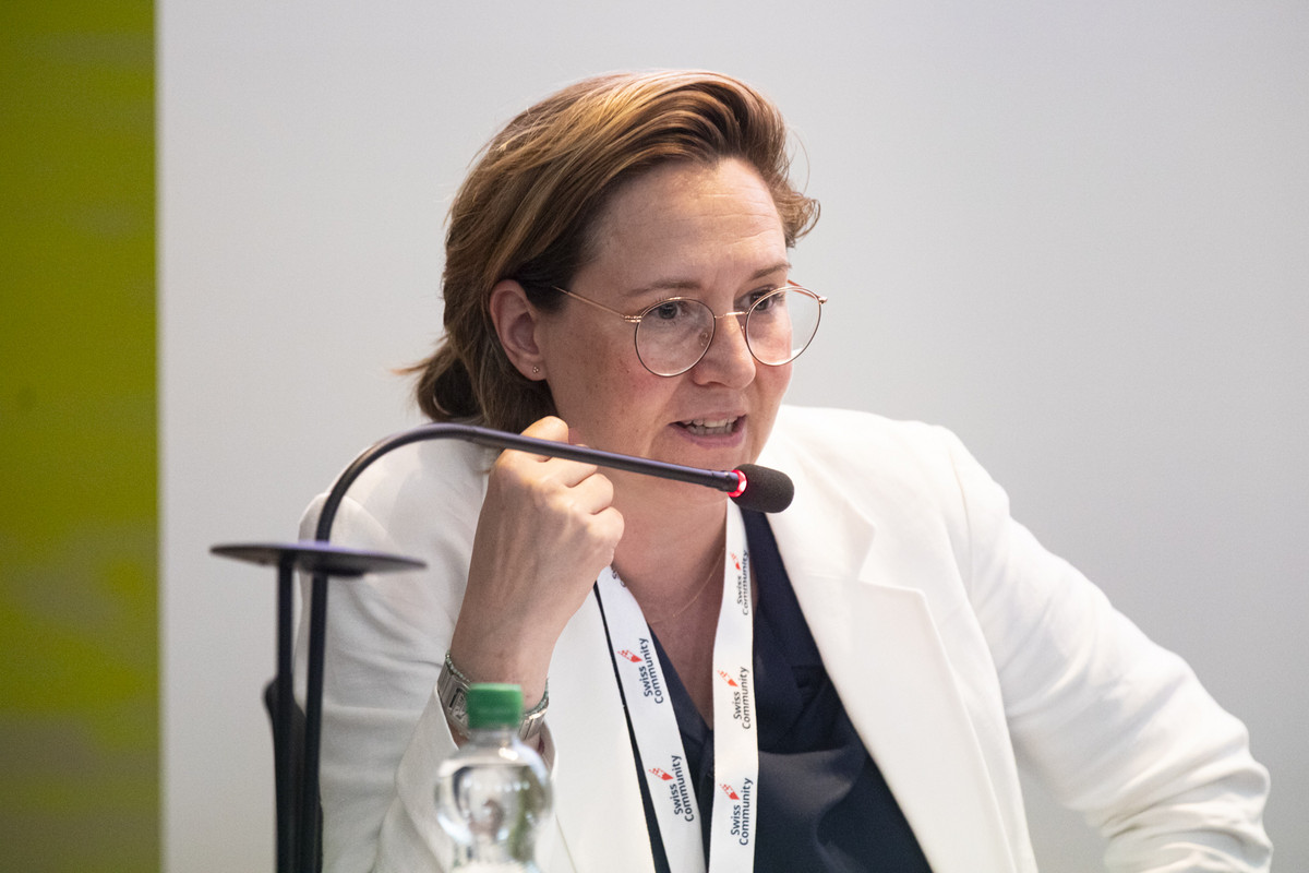 Pour Larissa Bieler, directrice de SWI swissinfo.ch, l’une des unités d’entreprise de la SSR, «le service public consiste à aller dans les niches qui ne peuvent pas être refinancées par le marché». Elle a évoqué le sport et dit que sans la SSR, plus de 95% des sports en Suisse ne seraient tout simplement plus couverts.