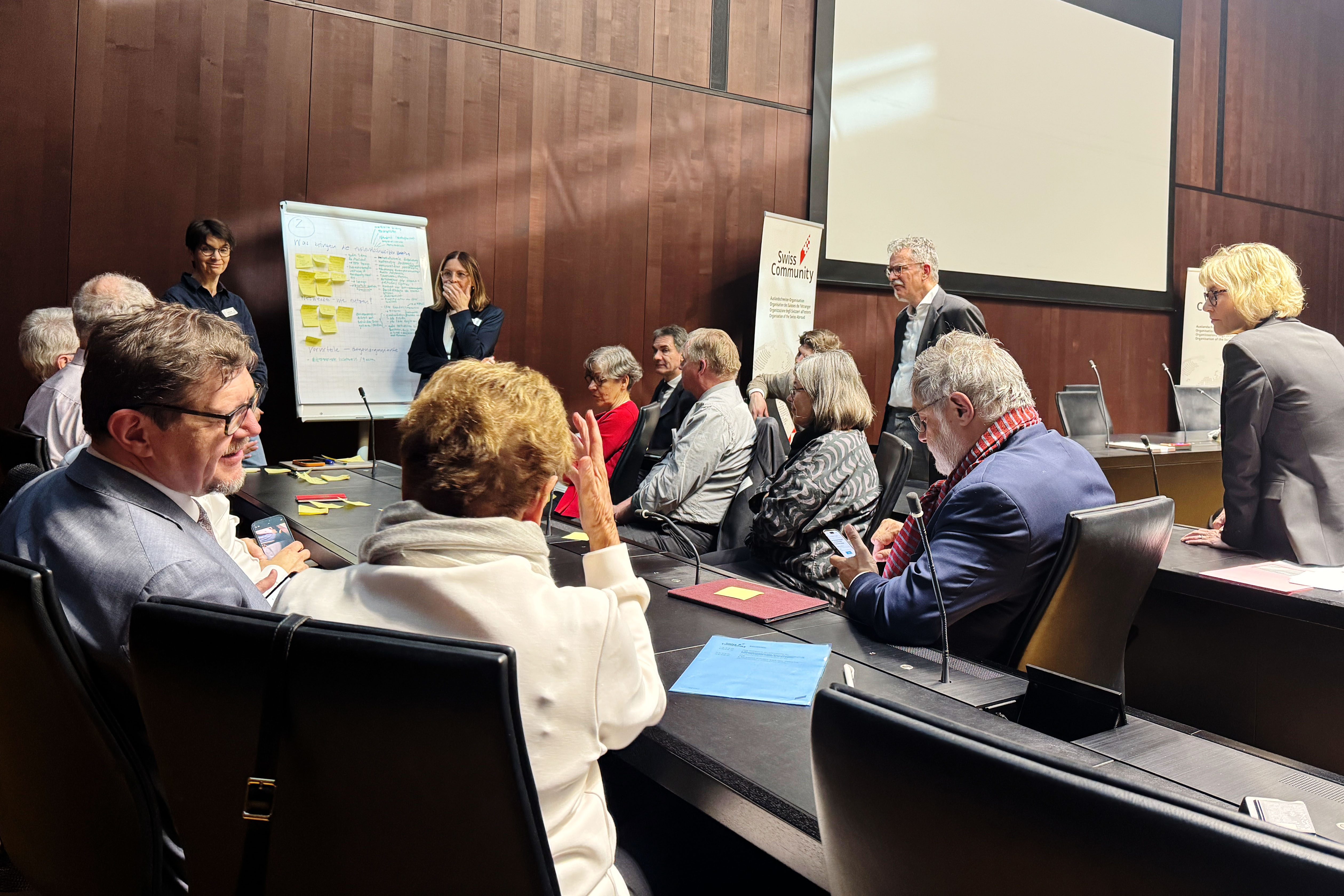 Répartis en quatre groupes de travail, les participantes et participants ont tenté de répondre à des questions telles que: «Que rapportent les Suisses de l’étranger à leur pays?», «Comment exploiter le réseau de la communauté?» ou encore «Comment surmonter les préjugés?».