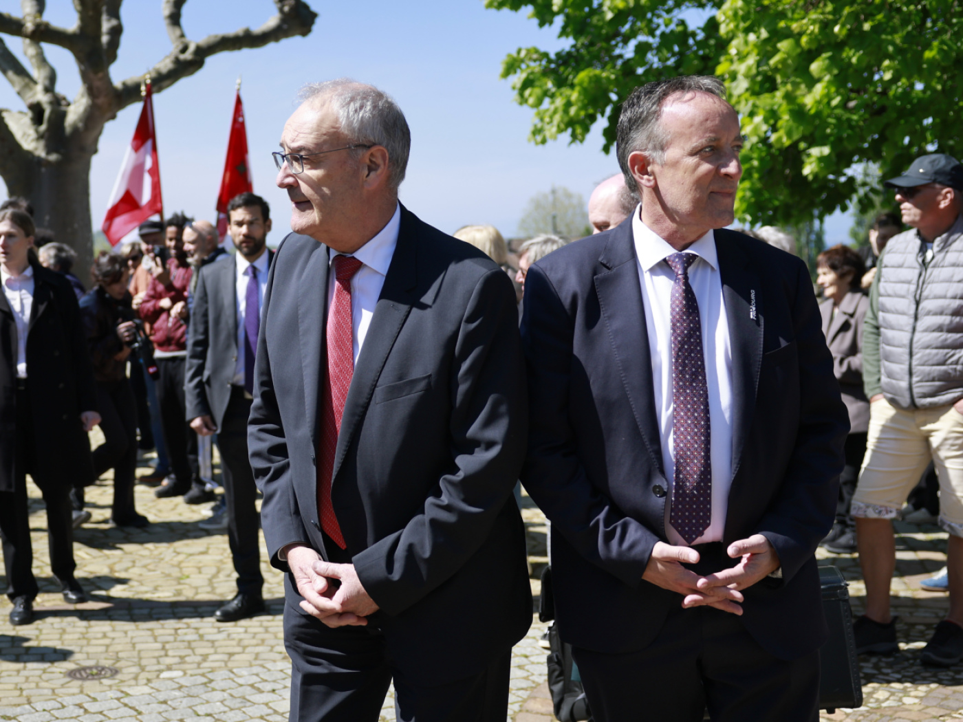 Il y avait là le Conseil d’Etat fribourgeois, un collège composé de sept ministres aussi, le préfet du district et le syndic d’Estavayer. Albert Rösti s’est tout de même déplacé, malgré l’annonce mercredi également d’une opération «urgente» du dos qu’il aura à subir dès la semaine prochaine pour un problème génétique.