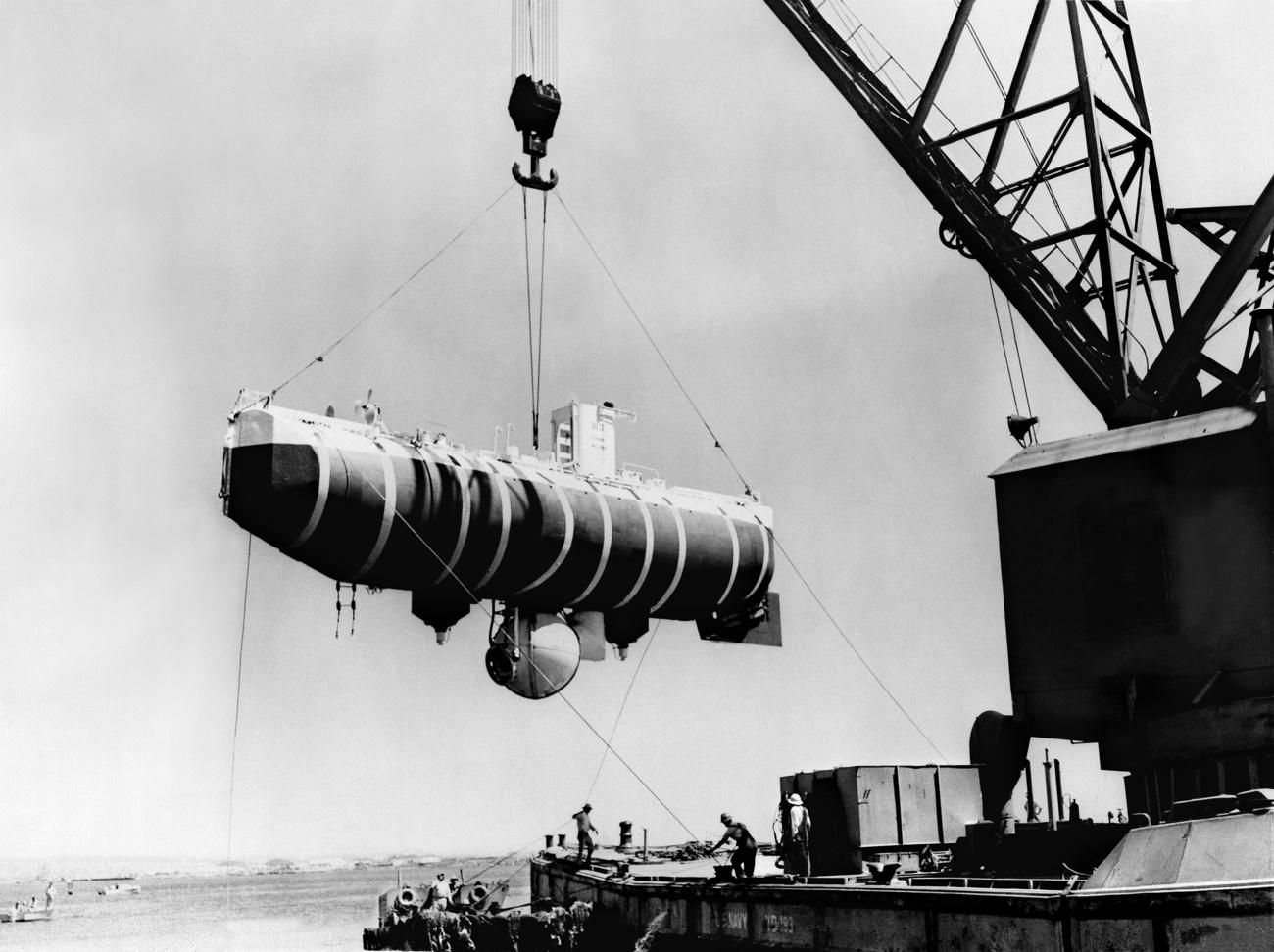 Son premier sous-marin s’appelle «FNRS 2» – pour Piccard, il s’agissait en fin de compte d’un vol en ballon – vers le bas, comme le racontent ses biographes Susanne Dieminger et Roland Jeanneret, Piccard annonçait déjà peu après son vol vers les étoiles qu’il allait désormais «construire un ‘ballon’ pour ‘descendre’ dans les profondeurs de la mer». Mais la Seconde Guerre mondiale interrompt cette nouvelle aventure et les premières tentatives sans pilote après 1945 n’aboutissent pas tout à fait. Piccard est alors raillé par la presse internationale.