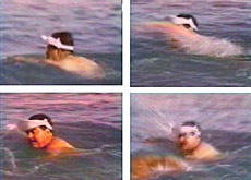 Et lui Saddam, que pense-t-il de tout cela, de tout ce ramdam mené autour de sa personne? Et bien, Saddam s’en fiche. Mieux, le dictateur se comporte en sportif zen. Il nage Saddam, casquette blanche en visière.