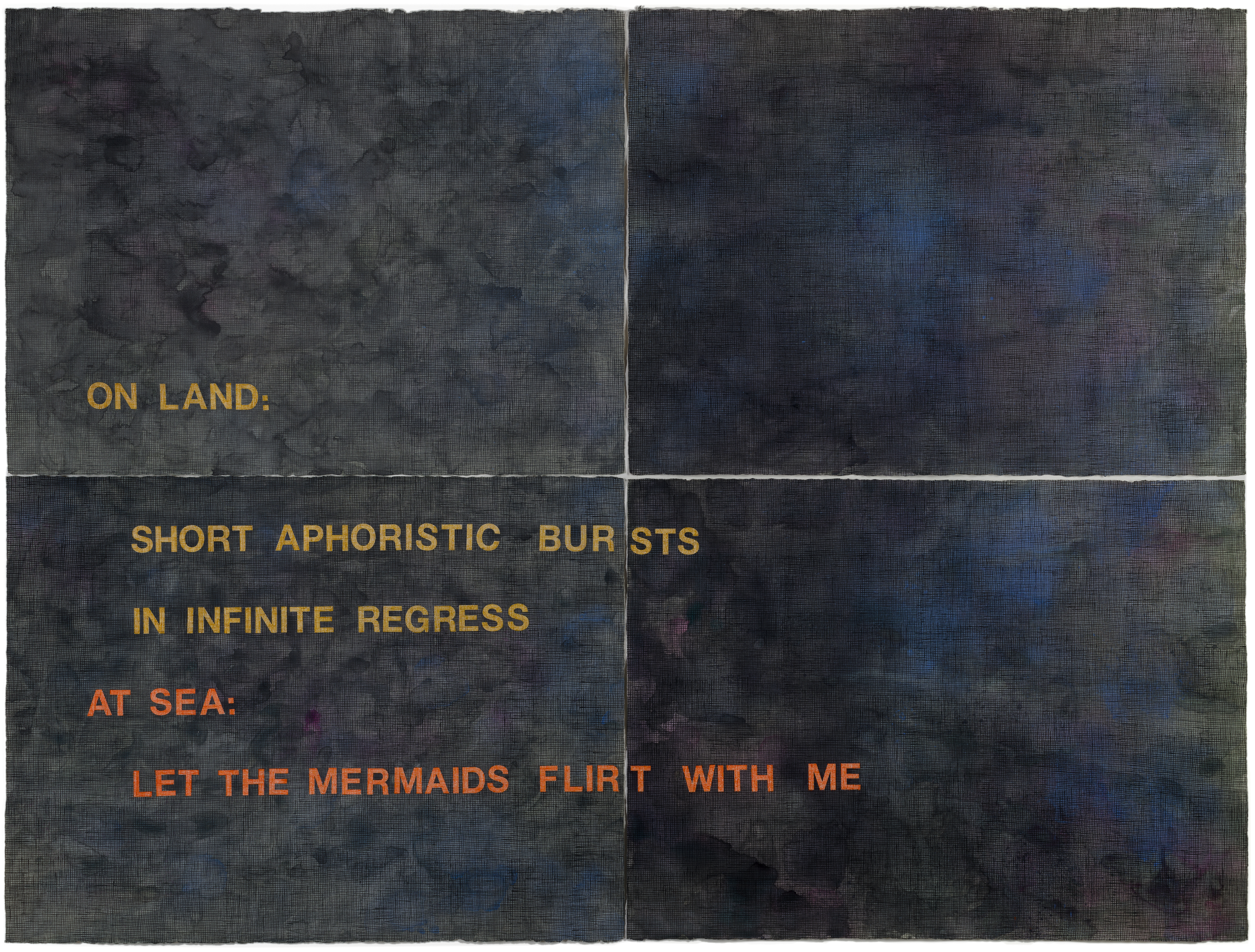 J’ai interrompu mon travail en tant qu’artiste pendant 21 ans. Je ne pense pas qu’il soit possible d’être peintre du dimanche. Le métier de curateur a été ma plus grande école. J’ai beaucoup appris sur les espaces, mais je n’ai pas le recul pour distinguer une influence de la curation sur mon travail artistique. La poésie comme la peinture me procurent un sentiment d’extase qui rejoint l’essentialité et la sobriété de mon art. J’ai commencé avec un crayon et une feuille, créant un art que je pouvais rouler et glisser dans un carton à chaussures. Ce sens de la sobriété est un fil conducteur qui me traverse et persiste dans mon travail. Aujourd’hui encore, par exemple, je réalise des vidéos avec mon téléphone portable et des matériaux trouvés sur la plage.