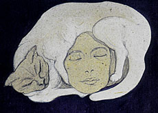 Remariée, retournée en France, elle s’est mise à peindre, à partir de la déclaration de guerre, en 1914, sous la dictée de rêves et d’hallucinations. Le résultat de ce travail conduit jusqu’à sa mort, survenue en 1952, tient dans le cycle de 3000 aquarelles intitulé «Ma Ville», dont un choix est présenté à la Collection de l’art brut. Visages aux grands yeux bleus, ou clos, entourés de longs cous d’oiseaux, créatures étranges, mystérieuses, formes très belles.