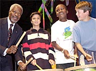 «Votre contribution à la paix est important. Vous êtes les leaders du XXIème siècle», a déclaré Kofi Annan aux 2’000 enfants qui l’ont longuement applaudi. La cérémonie finale du festival a été une suite de smboles pour la paix. On a ainsi vu des enfants de trois continents jouer ensemble un morceau répété pendant la semaine. Le secrétaire général de l’ONU s’est prêté au jeu en se joignant aux enfants et en tapant lui-même sur un tam-tam.