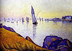 Ainsi Signac travaille-t-il autant sur la dynamique des lignes, montantes ou descendantes, calmes ou rythmées, telles les voiles de bateaux ou les cimes des arbres, que sur le dosage des couleurs.