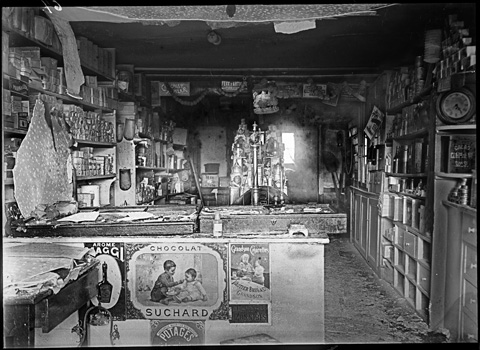 Vol avec effraction, vue intérieure du magasin, Grandcour, 25 mars 1907