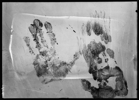 Empoisonnement à l'acide de Mme Bollo, empreintes de mains contre le mur, Bière,