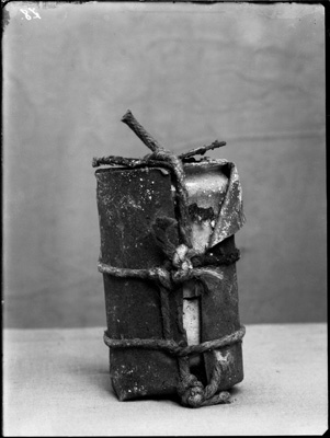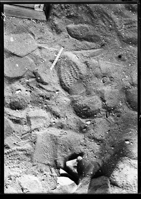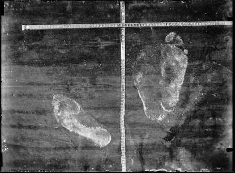 Tentative d'incendie à la dynamite, empreintes de souliers dans le sable, maison Brazzola, Beau Séjour, Lausanne, juillet 1906
