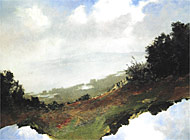 Des lambeaux de panorama – vues de Saint-Prex, de Chexbres ou de Chillon -, ainsi que des natures mortes aux fleurs et aux fruits, sont dupliqués ou triplés autour d’un vide central, vertigineux. Mise au point dès la fin des années cinquante (le premier tableau de ce type, dans l’exposition, date de 1959 et est intitulé «Chrysanthèmes»), cette organisation bien particulière de l’espace, sans cesse reprise, conserve une fraîcheur étonnante.
