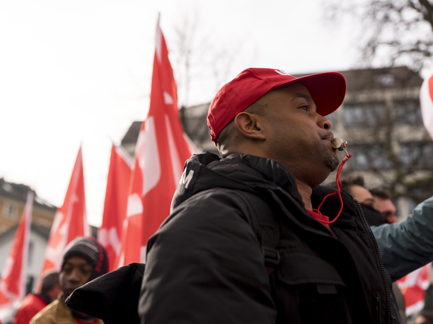 Débrayage et manifestation des ouvriers de la construction à Zurich