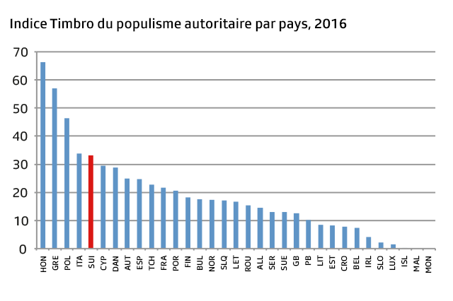 La Suisse au cinquième rang européen pour le populisme autoritaire
