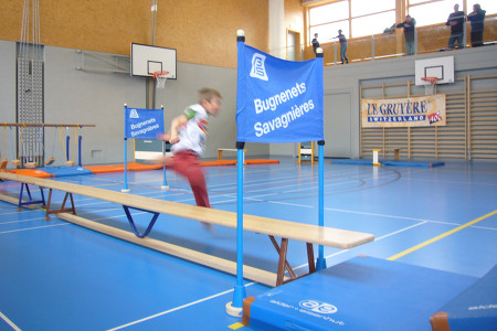Un parcours "Coupe du monde" pour se mesurer à Didier Cuche dans la halle de gymnastique de Dombresson.
