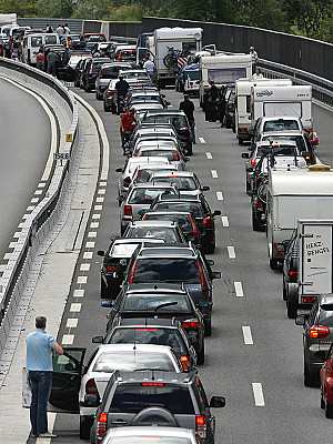 L'exode estival vers le Sud provoque de longues queues devant le tunnel du St-Gothard.