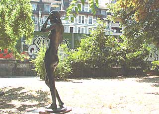 Genève, quartier St-Jean. Egarée dans un square oublié, cette nymphe anonyme ne verra jamais le fleuve qui vient de ressortir du Lac, quelques mètres en contrebas.