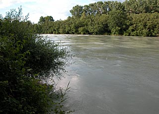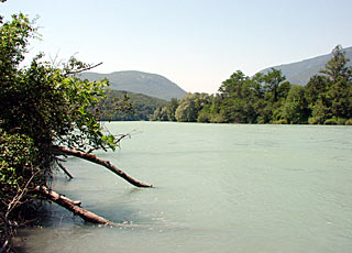 A peine sorti de Genève, le Rhône reprend ses habitudes sauvages. Ici, dans les bois de Chancy.