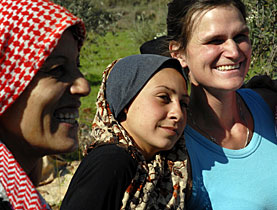 A peine débarqués, les enfants courent dans le verger et se mêlent instantanément à une vingtaine d’ouvriers déjà voûtés sous les oliviers. Ce sont des bédouins syriens qui louent leurs services pour des travaux des champs.