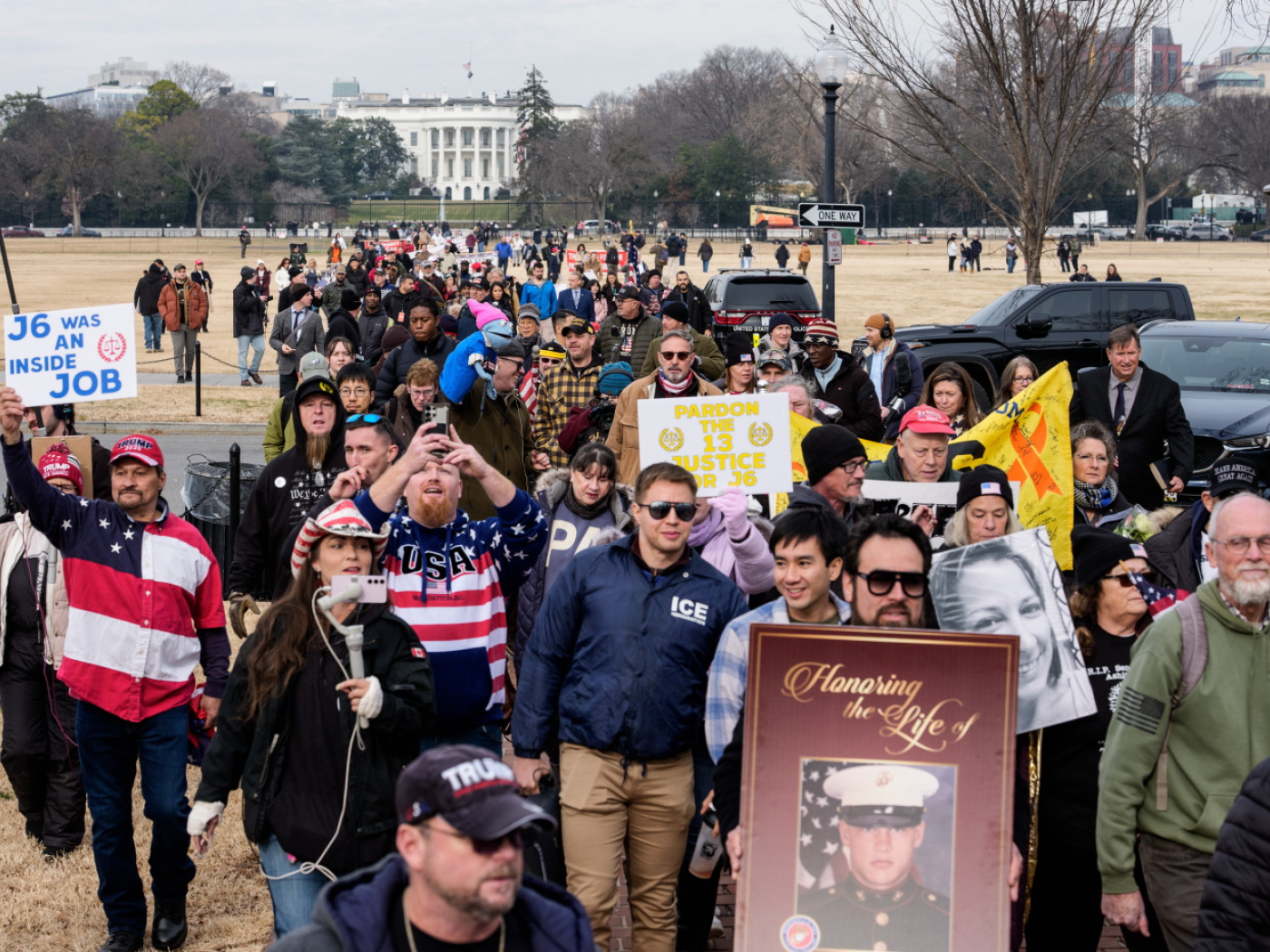 Les manifestants rassemblés devant la Maison-Blanche, là où Donald Trump avait prononcé un discours enflammé le 6 janvier 2021, se sont ensuite dirigés vers le Capitole, reprenant la route qu’avaient prise les assaillants cinq ans auparavant.