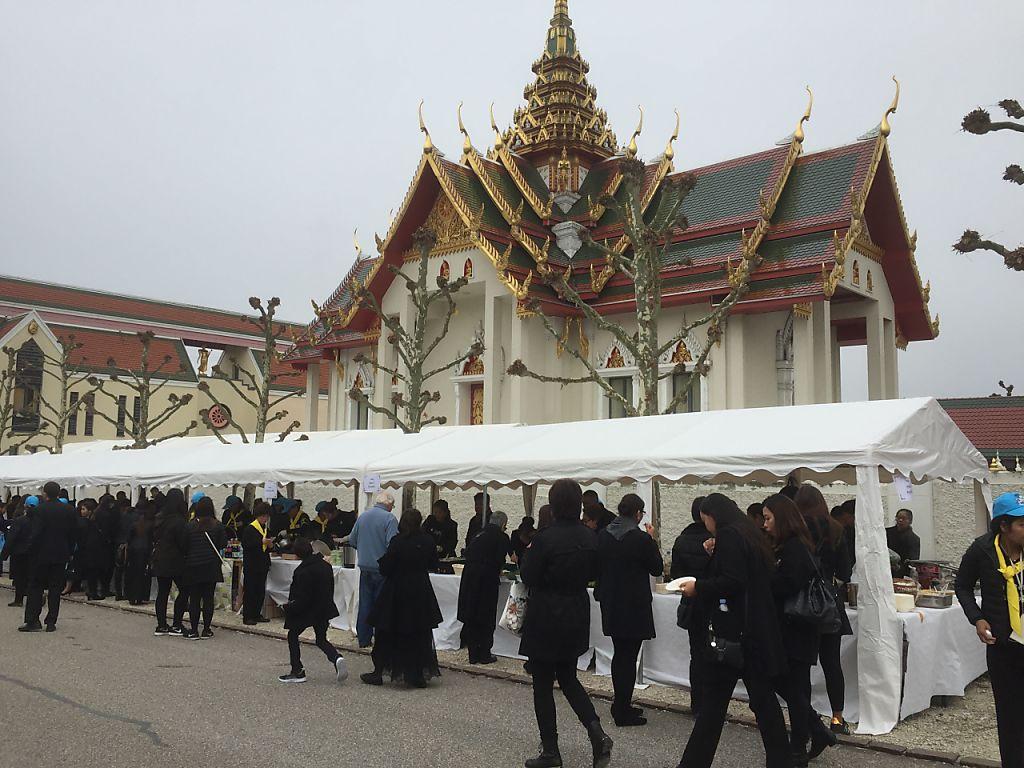 Avec 300 personnes venues se recueillir, le temple bouddhiste d’Echallens (VD) était plein. Commencée à 10h00, la cérémonie s’est achevée en milieu de journée, mais beaucoup de gens sont restés pour suivre à la télévision les funérailles organisées à Bangkok. Tout s’est très bien passé, se sont félicités les organisateurs.