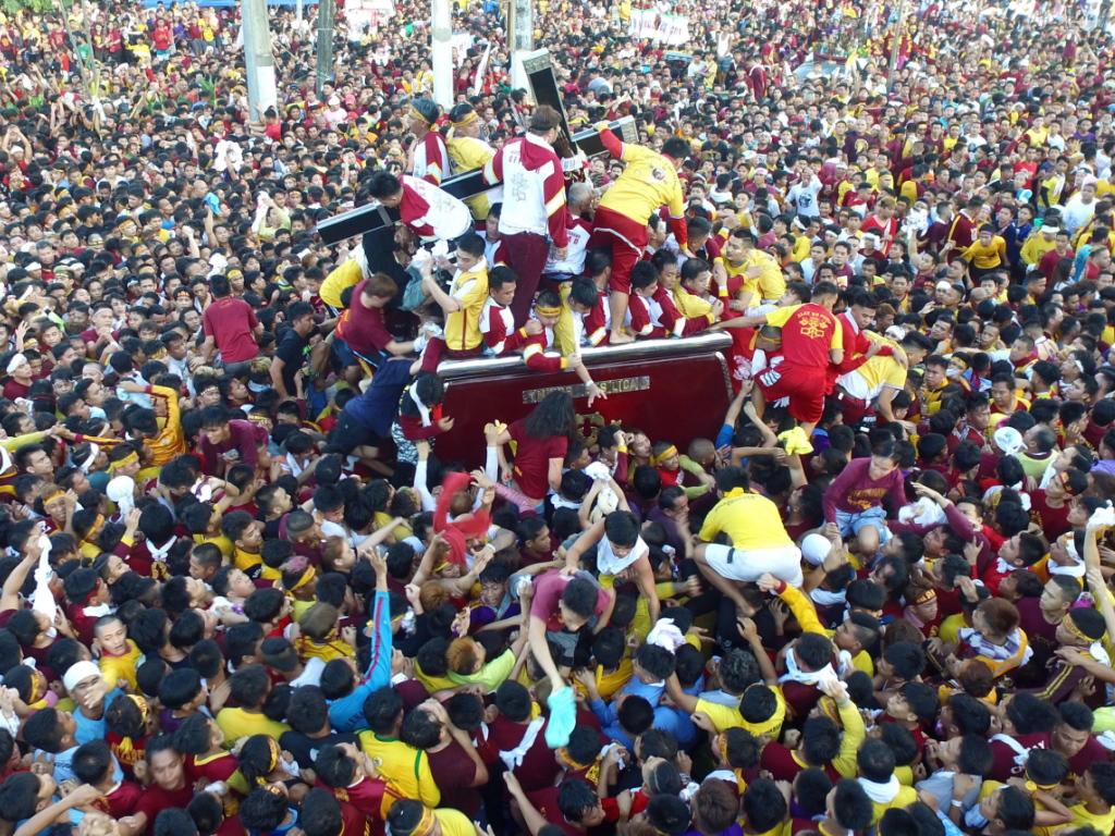 La police a estimé les participants à 800’000 fidèles au moins. Convaincus qu’elle peut guérir les maladies ou apporter la bonne fortune, bon nombre d’entre eux tentaient de se jeter sur la statue du Christ à taille humaine, qui porte sur son épaule une grande croix noire.