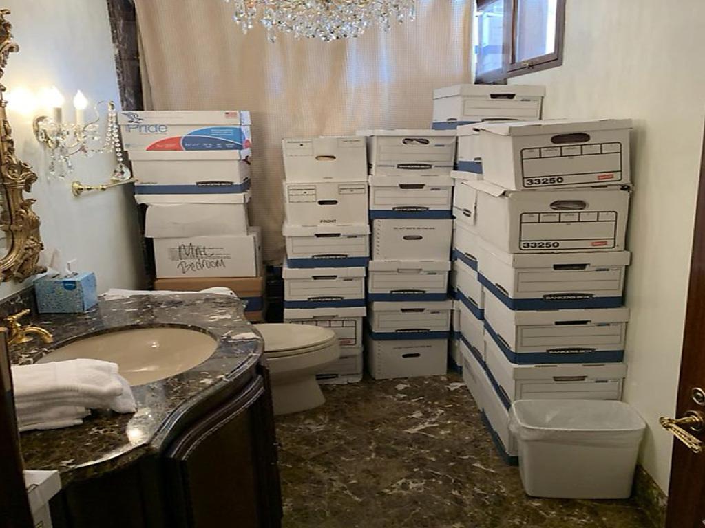 Une photo reproduite dans ce document montre des piles de boîtes derrière des toilettes dans une grande salle de bain. En janvier 2022, après plusieurs relances, il avait accepté de restituer 15 boîtes contenant près de 200 documents classifiés.