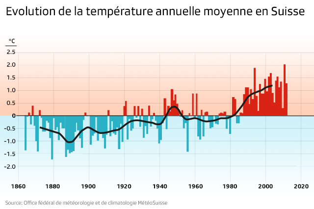 Alors que le réchauffement climatique depuis le début de l’industrialisation s’élève en moyenne à 0,8 degré, il a été de 1,7 degré en Suisse en raison de sa situation continentale. Il n’y a cependant pas de climat typiquement suisse et les conséquences devraient être différentes en fonction des différentes latitudes et de l’altitude. Par conséquent, les recommandations des experts sont différenciées. De plus, il n’y a pas de doctrine unique pour l’ensemble du pays.