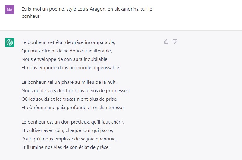 Test réalisé avec la version payante de ChatGPT le 31 mars 2023