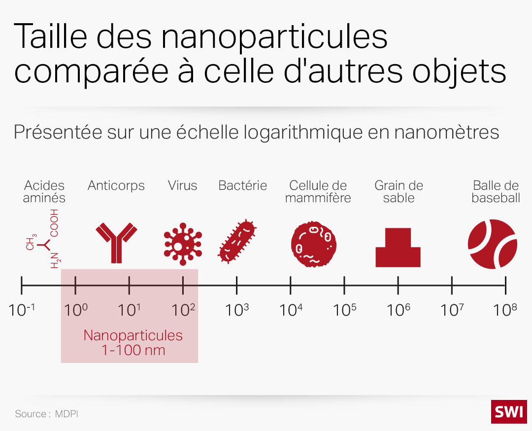 Le préfixe «nano» évoque d’étranges scénarios de science-fiction. Les nanosciences désignent simplement une technique permettant de manipuler des particules à l’échelle nanométrique, c’est-à-dire moléculaire. Cette technologie devrait inspirer l’espoir plutôt que la crainte, estime Cornelia PalivanLien externe, professeure de chimie physique à l’université de Bâle et membre de l’Institut suisse de nanotechnologie à Bâle