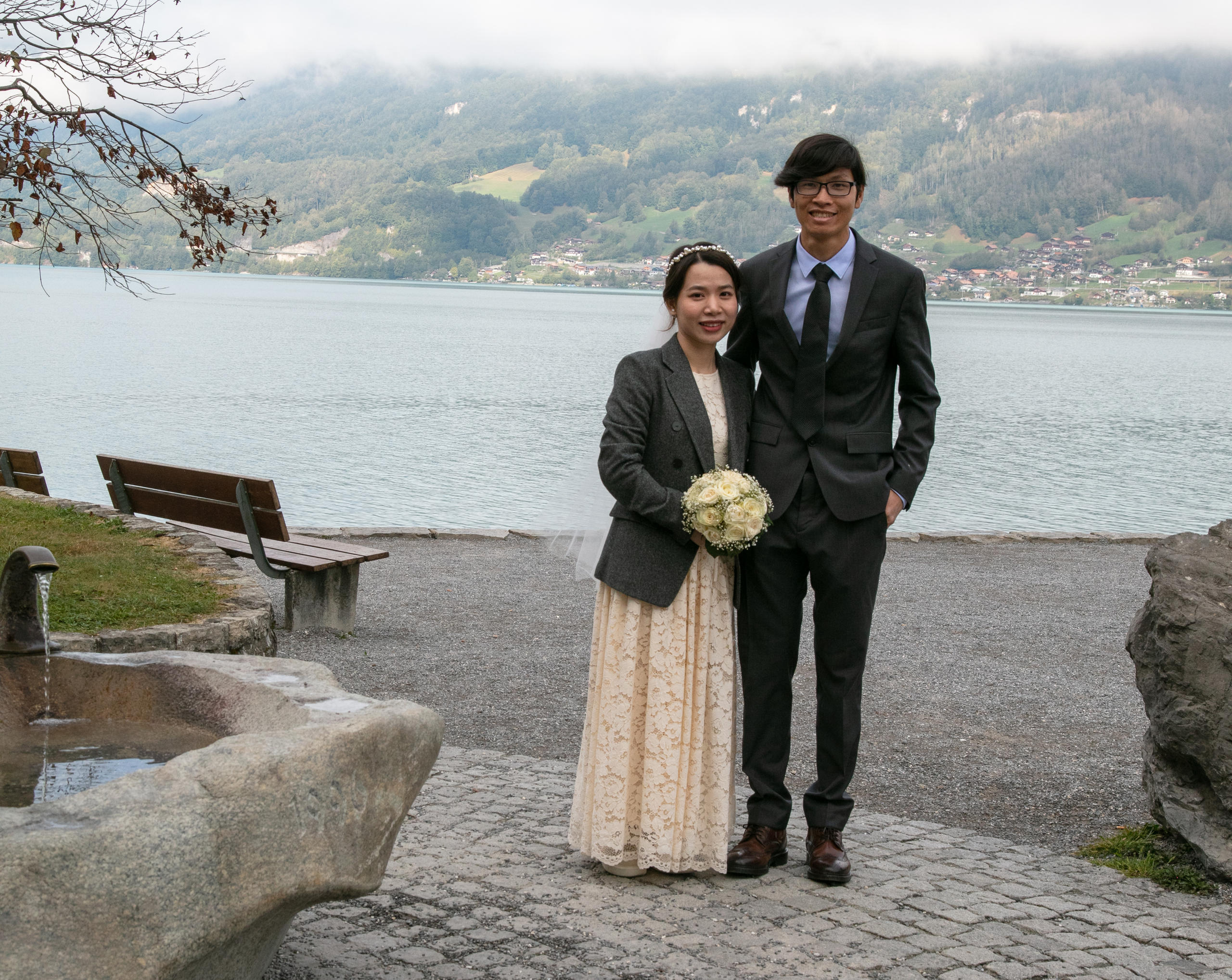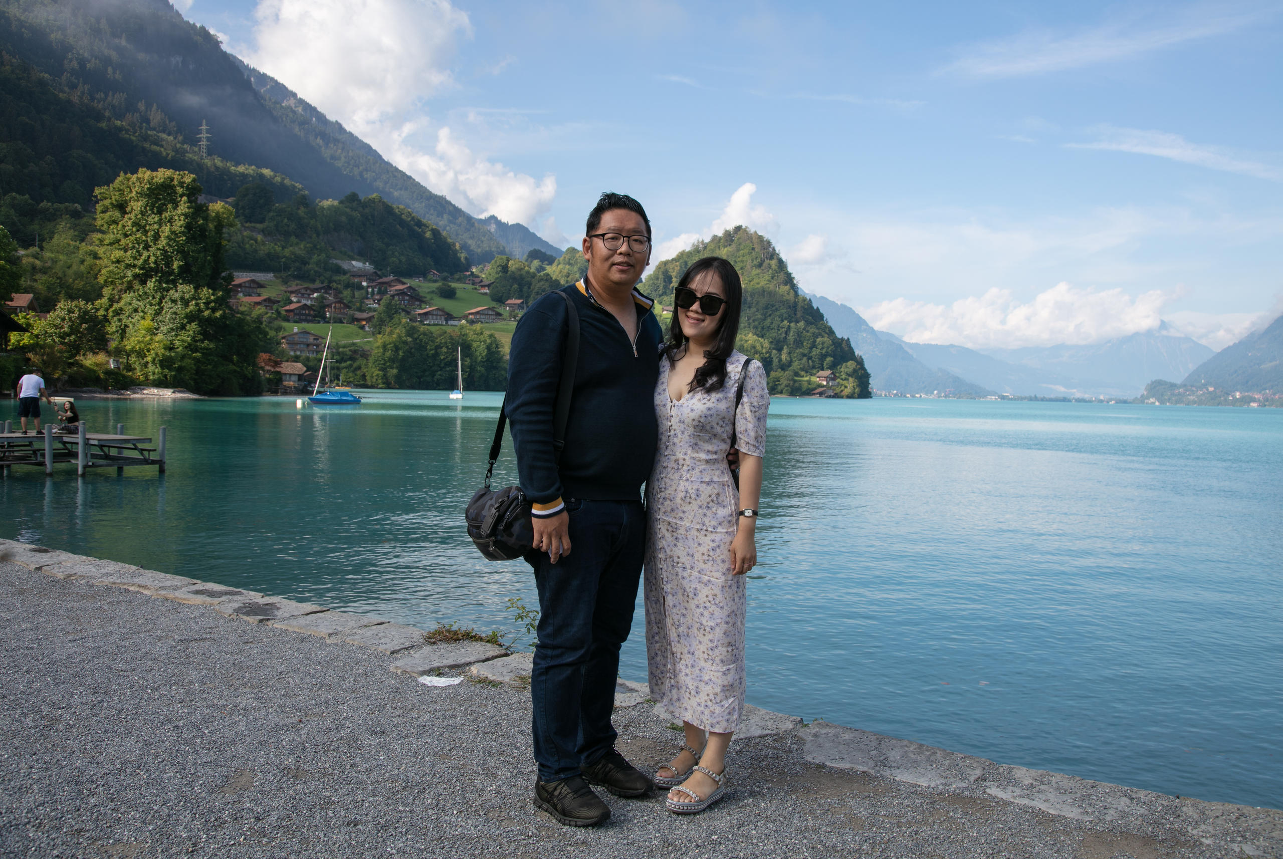 Vietnamese couple posing for a photo at Lake Brienz.