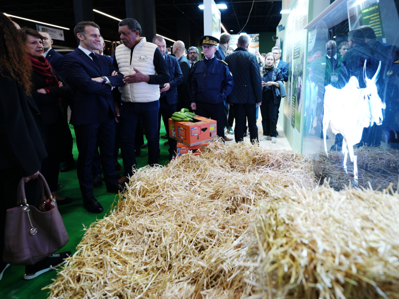 Accompagné d’un dispositif policier particulièrement important cette année – 250 policiers en civil – le chef de l’Etat a découvert à son arrivée le stand de l’éleveur martiniquais André Prosper, qui l’a invité à venir sur son île après avoir dû renoncer à amener sa vache brahmane Biguine, qui devait être l’égérie de l’édition 2026.