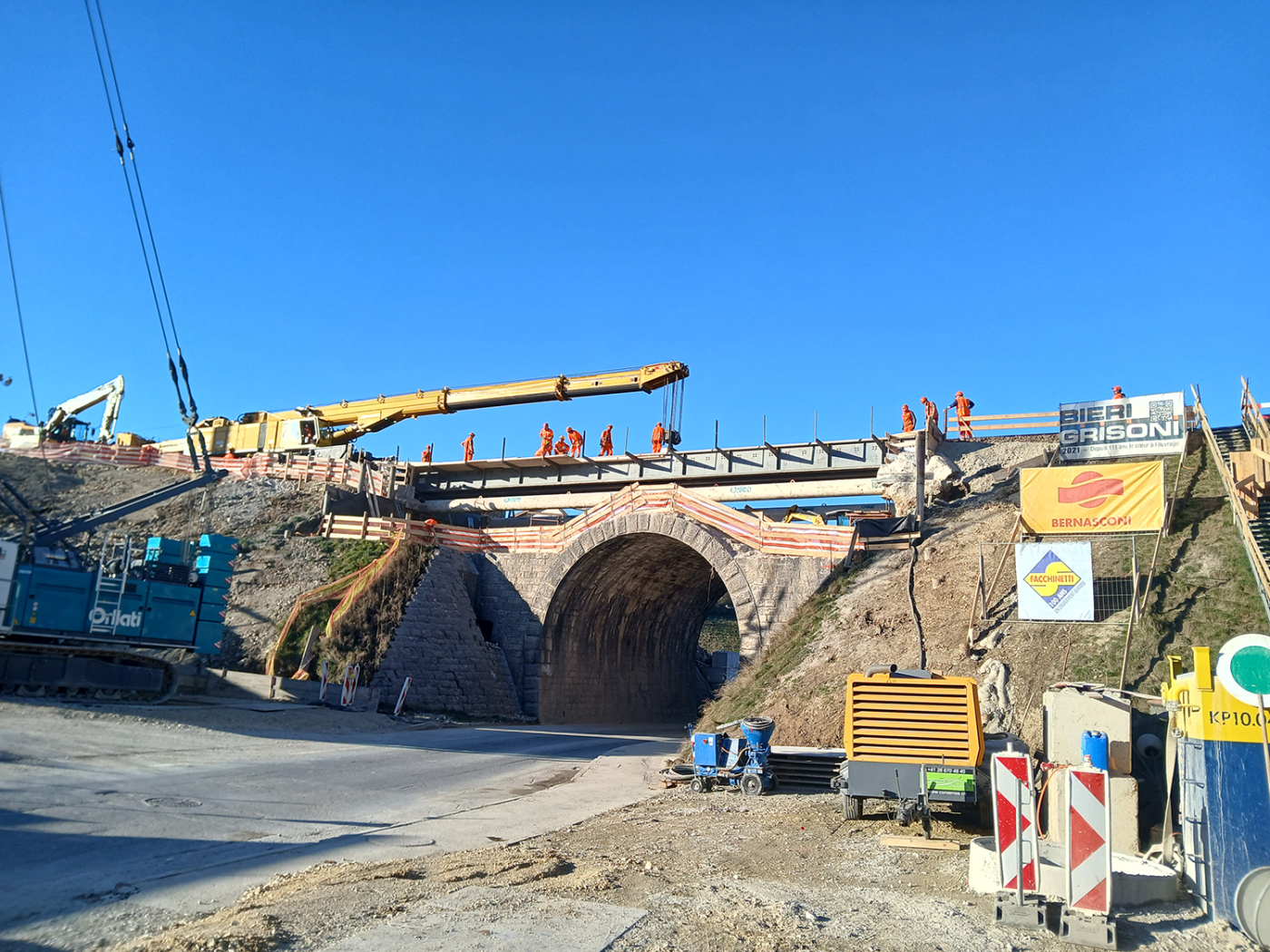 Pour démolir l’ancien ouvrage et construire le nouveau pont sans pour autant devoir interrompre le trafic ferroviaire sur la ligne La Chaux-de-Fonds à Bienne, un pont métallique provisoire a été posé en 2024 par les CFF lors d’un week-end de travaux. L’enlèvement du pont provisoire nécessite un week-end d’activités similaire.