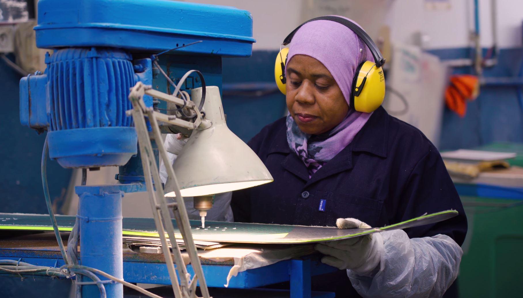 Une employée de l'usine tunisienne de snowboards Meditec. Antoine Harari