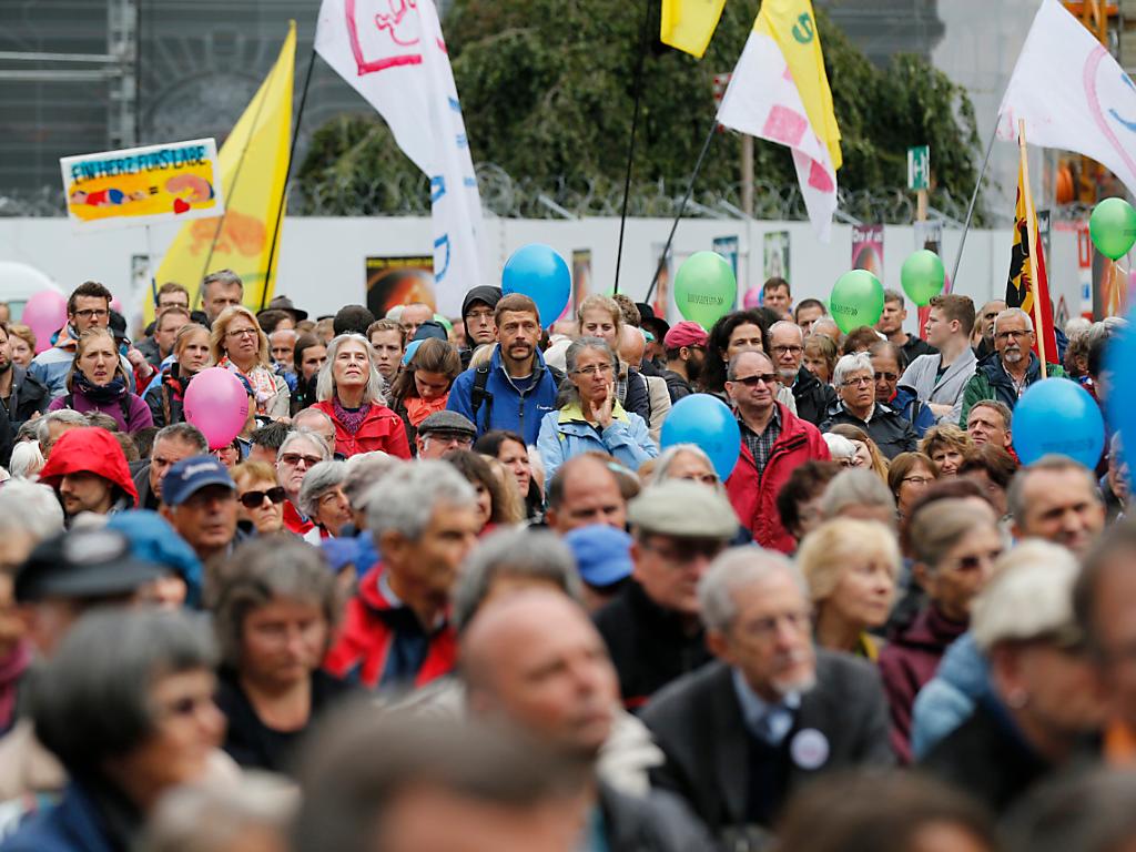 La majorité des participants se sont rendus directement sur la place avec des douzaines de bus. A l’origine, un cortège était prévu à travers la ville.