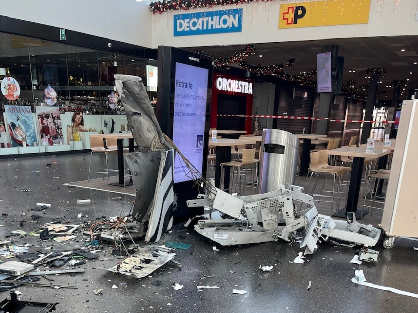 (Keystone-ATS) Les dégâts sont conséquents, a fait savoir la police neuchâteloise (PN) dans un communiqué. Dans le détail, au moins trois individus ont pénétré par effraction dans Marin Centre. Ils ont alors fait exploser deux distributeurs de la Banque cantonale neuchâteloise (BCN), à l’intérieur du centre commercial, puis ont pris la fuite.