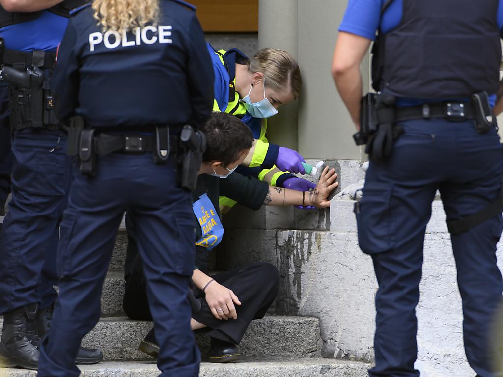 Du personnel médical a été appelé pour évaluer l’état de santé des manifestants. Il est intervenu pour décoller les mains des activistes, a constaté un photographe de Keystone-ATS.