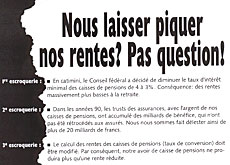 L’Union syndicale suisse (USS) – qui s’était jusqu’ici bornée à dénoncer le fiasco des recettes du libéralisme dans ce problème des rentes – s’est dit prête à entrer en pourparlers sur l’éventuelle introduction d’un taux de rémunération flexible des fonds de pension.