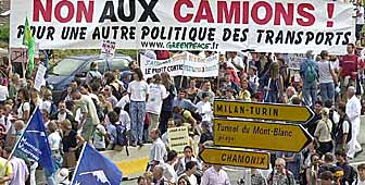 Plusieurs milliers de personnes ont protesté contre l’ouverture du tunnel du Mont-Blanc aux camions de plus de 40 tonnes. Un accès sans entrave décidé par le gouvernement français un peu plus de trois ans après l’accident qui avait tué 39 personnes le 24 mars 1999.