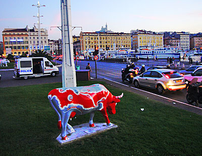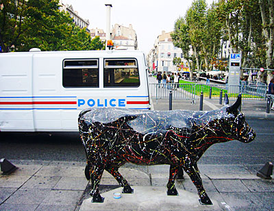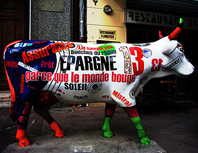Lancé en 1998, le concept du zurichois Pascal Knapp - des vaches grandeur nature en fibre de verre livrées en pâture aux artistes en a déjà emballé plus de 5000 dans une quarantaine de villes. 63 créateurs marseillais ont à leur tour maquillé, travesti et peinturluré les helvètes bovidés. Le résultat a été présenté du 11 juin au 11 octobre. Quelques exemples glanés au fil des rues (photos: swissinfo)
